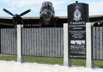 Bomber Command Museum of Canada in Nanton, Alberta is home to the Canada’s Bomber Command Memorial. The structure’s panels contain in excess of 10,000 engraved names of Canadians and Americans (also known as ‘RCAF-Americans’) that served and died in Royal Canadian Air Force (RCAF) service while the aerial military arm was operating under the direction of Royal Air Force Bomber Command during World War II.
