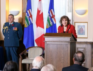 Her Honour, the Honourable Lois E. Mitchell, CM, AOE, LLD, Lieutenant Governor of Alberta, officiated at the 31 October 2019 ceremony on behalf of Her Majesty The Queen and the Governor General of Canada, Her Excellency The Right Honourable Julie Payette CC, CMM, COM, CQ, CD. The latter is the viceregal representative of Queen Elizabeth II and is based in Ottawa.