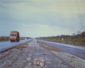 Orestes arrived over the designated road and spotted the three on the left side of the highway in their orange attire. He landed, after miraculously avoiding a car, rock, road sign and truck, on the coastal highway of El Mamey beach in Varadero, Matanzas Province. His arrival was shortly after sunset. Quickly Orestes collected the priceless and scared passengers.