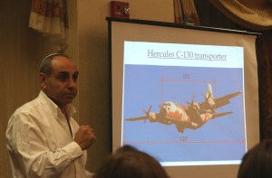 Sassy commented, “Why the Israel Air Force chose the nickname ‘rhinoceros’ I do not know. If anyone present sees any resemblance of a C-130 to a rhinoceros I will give them a million dollars!” Audience members shook their heads in amused agreement.