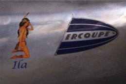 The Ercoupe’s nose artwork, which was applied years ago to represent the ancestral pride of the principal owner and primary pilot, represents a young aboriginal woman appearing in the background of a 1905 Paul Kane painting of the interior of a Klallam/Callam winter lodge on Vancouver Island, British Columbia.