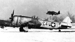 Bill, who was caught low and slow and near stalling speed, dared not touch any controls for fear of losing controllability of the P-47 which was at that time barely flying. He also knew somewhere in front of him were other unseen Thunderbolts. Mr. McChesney applied gentle pressure to the stick and the nose of his P-47 gradually began to rise. Soon six 388th planes emerged from the top of the fog bank.