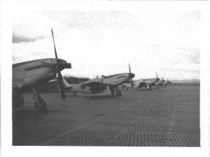 Richard never forgot 6 June 1944. Early that day he was in Tunbridge Wells on a two-day leave. With “D-Day” operations commencing, Dick rushed back to Staplehurst. There he frustratingly sat idle all day while ‘on alert’ in the cockpit of his Mustang. Finally, at 2100 hours, orders were received and the Mustangs’ large 4-blade propellers began to slowly rotate simultaneously with the whine of electric starters. One by one the Merlin engines coughed into life, belching blue smoke and flame from the planes’ exhaust stacks. The aerodrome soon experienced a myriad of movements as the fighters hurried along aprons and raced down the runway, lifting gracefully into the grey sky with their undercarriages retracting as they climbed.